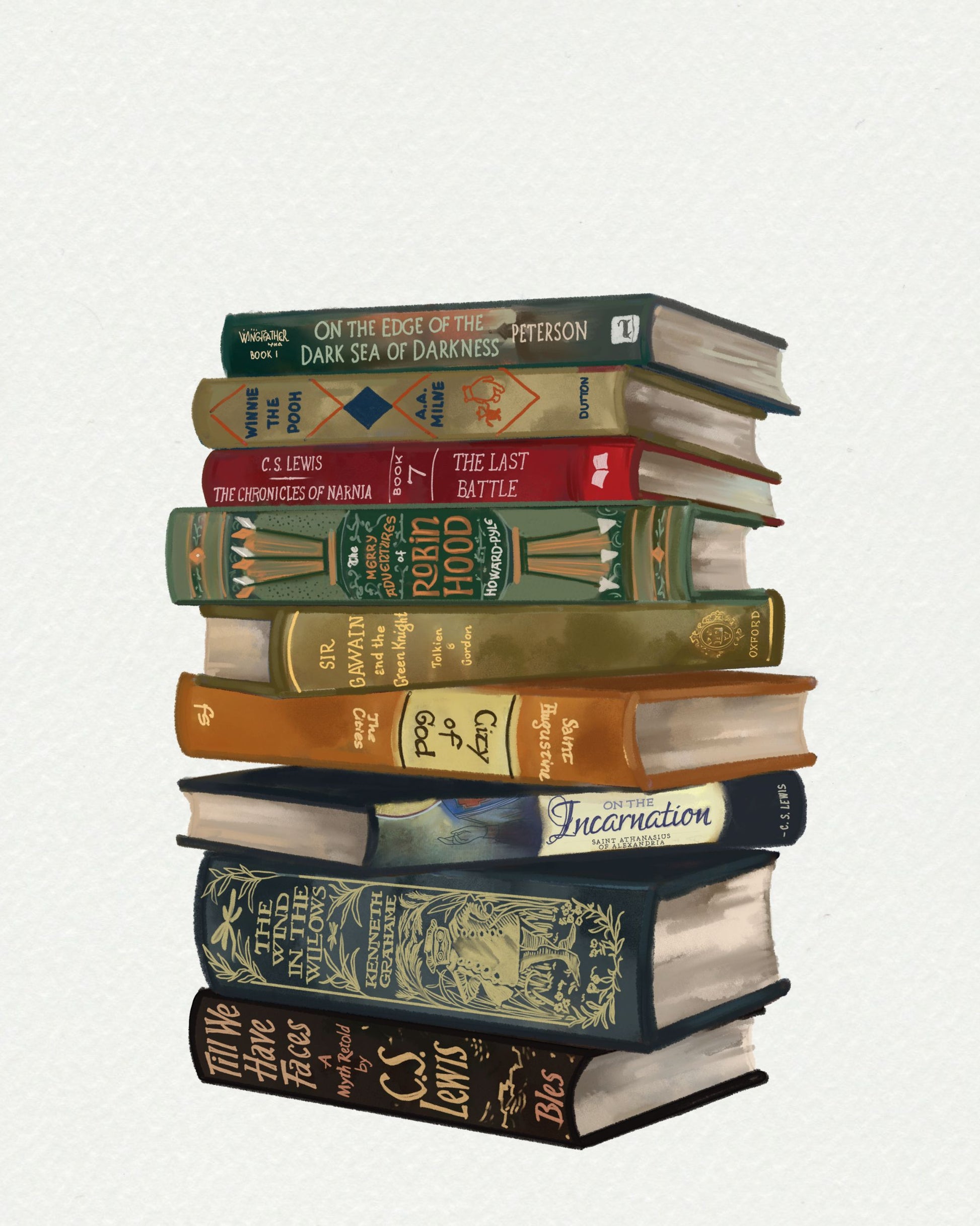 Book Lover Gift: Custom Hand-Drawn Stack of Favorite Books
