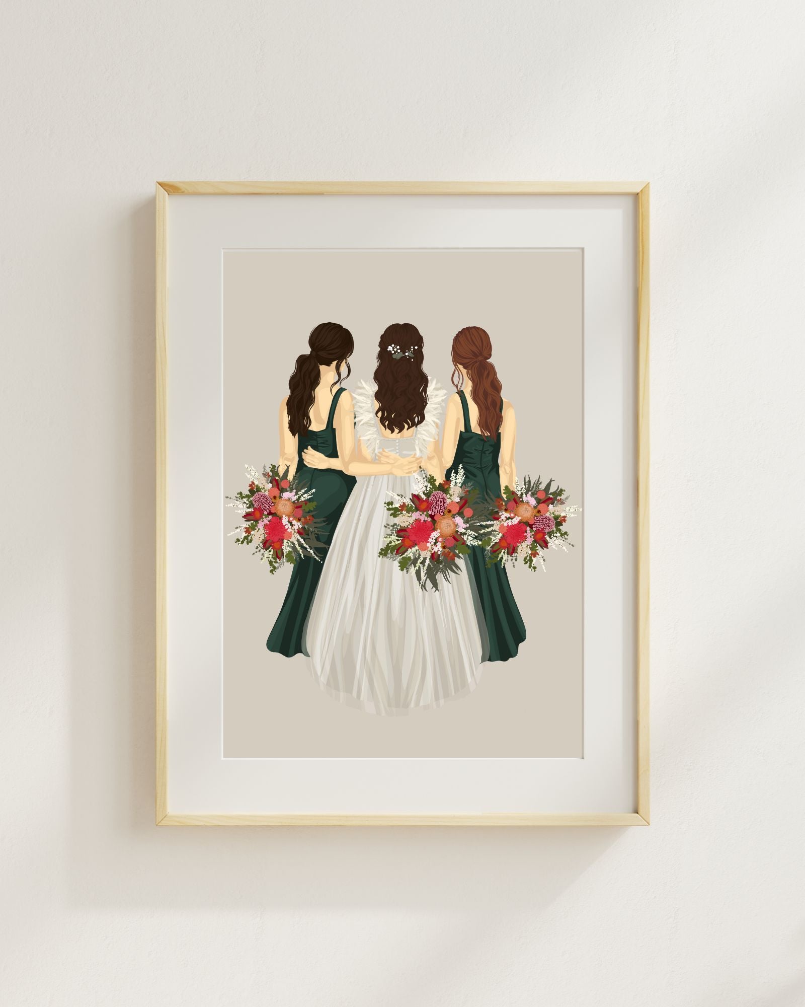 Want a really special way to thank your bridesmaid or maid of honor? This custom illustration captures you both from your photos - your dresses, hairstyles, bouquets, and even special little details - turning them into a timeless keepsake. I can draw you as bride and your maid of honor in your wedding attires, before your wedding actually takes place. This is a hand-drawn illustration so I can add details from different pictures, try on, inspiration, etc.