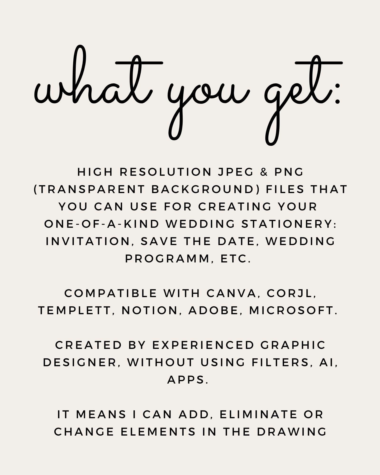 If you’re getting ready for a wedding of your dreams and thinking of elegant invitations, I’d love to work with you to create something beautiful and meaningful! After purchasing message me a picture of your place with specifications for line art color and background color.