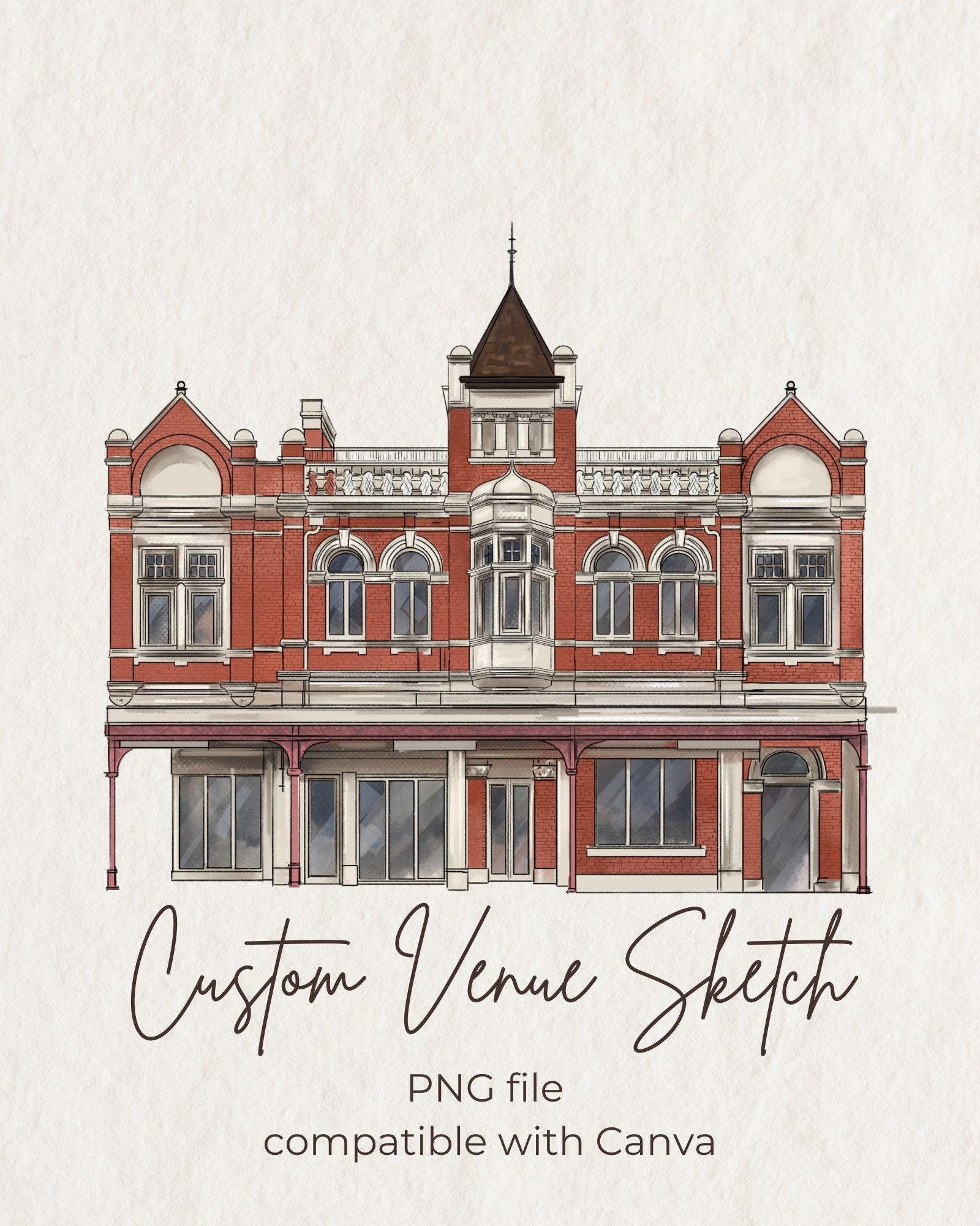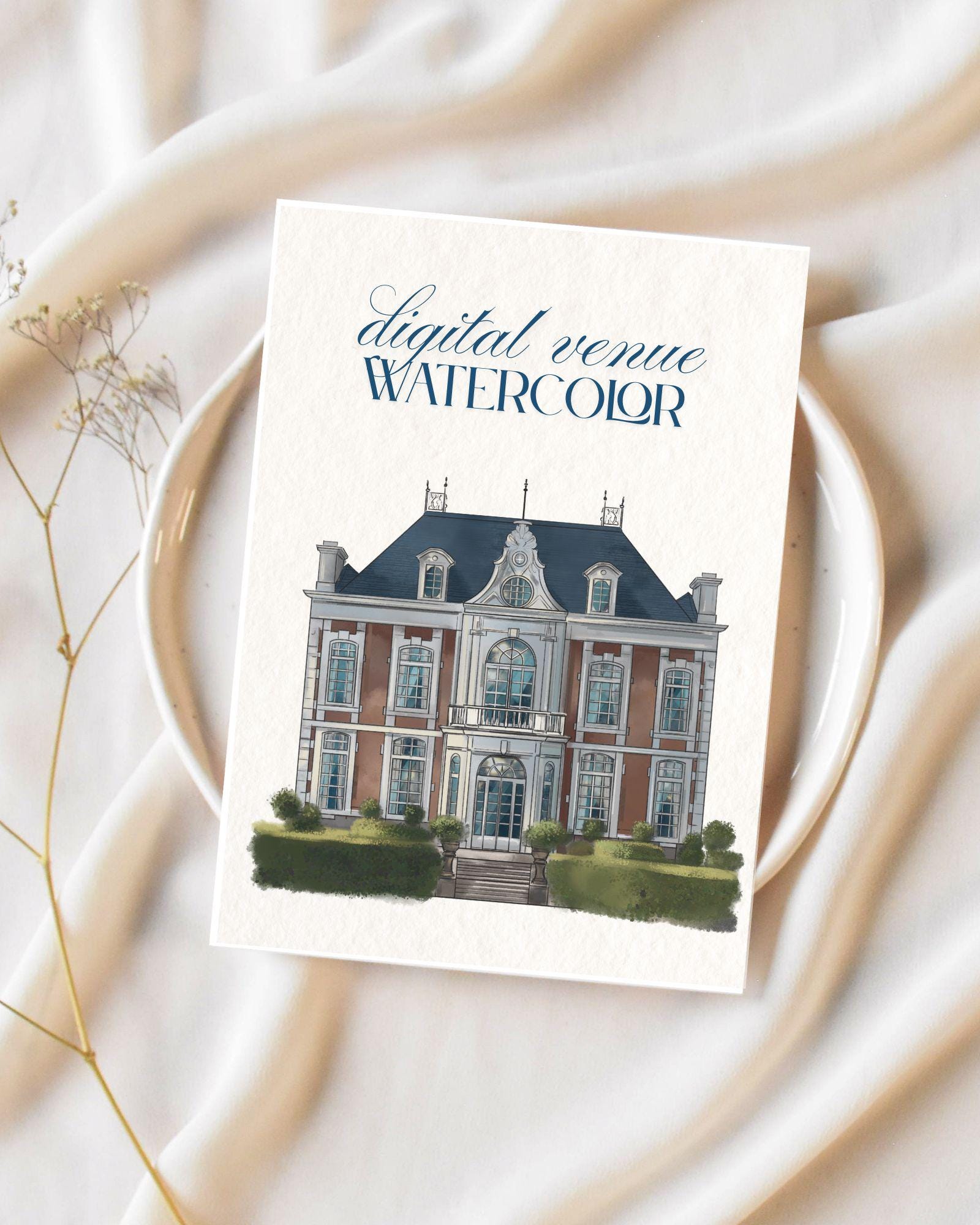 Custom Wedding Venue Drawing Watercolor Digital